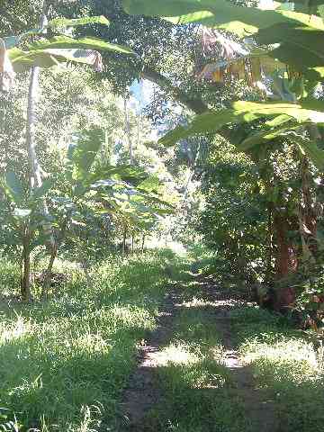 Logs & Stories - June 2005Marquesas Friday, June 3 Bill: We'd been trying to reconnect with Ishmael, our fruit benefactor, and Karryn and I had walked up to his house twice. The first time, he wasn't home, but on the second he and his family were taking their mid-day nap. We made introductions between Karryn and Ishmael's wife Tanya, then talked briefly. He invited us to come back to have lunch in a few days. Today was that lunch. All four of us hiked up the hill to Ishmael's, arriving around noon. Unfortunately, only Ishmael was home to greet us because his son had stepped on a nail at school and his foot had gotten an infection that made a trip to the hospital appropriate. He was in good condition, and Ishmael and Tanya were taking turns staying with him. Even so, Ishmael had gone to great effort to make and have lunch with us, and we were treated to a salad with shrimp, cabbage, carrots and potatoes, chicken cooked with green papayas, onions and coconut milk, rice, grilled chicken, and somewhere along the way there was breadfruit. The food was all very good, but I had a sense that Ishmael was disappointed at our appetites; judging by the amount of food there, I think the average portion size is bigger than what we eat in a meal. We finished up with homemade carasol ice cream along with a fruit salad served in coconut halves that Ishmael whacked in half right before serving it up. As our lunch conversation unfolded, we got a better sense of his family history. Ishmael, who in spite of his name is very Polynesian looking, is the grandson of a German immigrant that arrived in paradise around the end of WWII. He was born in Tahiti, but grew up on Nuka Hiva. He'd returned to Tahiti for high school, then spent six years working in the island's hotels and resorts. He'd learned to speak English, made a trip to France, married, and returned home with a small family. It turns out that Ishmael has nine brothers and sisters. One brother, a communist, lives next door. Another brother, his face half covered in tattoos, lives on the remote north side of the island in Anaho Bay, reputed to be the quietest anchorage in the Marquesas. One sister lives on an adjoining lot and two others live in Paris. I'm hoping we'll be able to meet the ones who live here as we explore the island. One of the things I've been curious about is Nuku Hiva's food and water supplies. We've been told repeatedly that Taiohae's water supply is undrinkable, but I hadn't seen any evidence of the five-gallon water jugs that are so common in Mexico, which frequently has similar issues. Ishmael informed us that he used his uncle's truck (the same one he'd given us the ride in earlier) to drive over to Taipaivai, the next valley to the east, to collect good water. One of the curiosities about the food supply is that the food in the stores is so expensive. This makes intuitive sense to me, since packaged goods manufactured elsewhere take a lot of time, effort, equipment and energy to transport themselves to Taiohae's shelves. But the lack of an economic structure here made me question how locals would come up with money to buy food. From talking to Ishmael, though, it appears that the food mechanism here works very differently than I'm accustomed to. In the US, most of the good flows through retail stores -- my impression is that the impact of non-business gardening, fishing, ranching, winemaking, etc., is pretty minimal. This place appears to be a bit different. One of the things that is truly amazing is the number of food-bearing trees you see, most of which seem pretty laden with fruit. At some point in the past, this island fed 30,000 folks, over ten times the current population, and I suspect these long-gone people planted a lot of the trees I'm seeing. Also, my impression is that the Marquesas Islands also have many wild pigs and goats that the locals hunt - in fact, several guides have mentioned that the overpopulation of goats on some of the islands has been substantial enough to lead to environmental damage. Probably just like everybody else's, Ishmael's yard provides a great deal - bananas, limes, papayas, pomplemouse, breadfruit and the ever-present Hogtestical fruit (carasol). He also has chickens and a pig in the back yard. They sent us home with eggs that were even better than the local ones sold in the stores. In addition, his family has 300 cattle that are kept up on the plateau in the middle of the island. Generally, it appears that these people live a more subsistence existence, where the food they consume comes from immediately around them, and that the presence of family members, friends and neighbors creates a social environment where folks get together and do things communally. With only four small stores in Taiohae, it's hard for me to imagine that the amount of food flowing through retail is significant. One of the things I'm continually mindful of is that I've been able to share a bit in this experience by virtue of Ishmael's generosity and command of the English language. In the course of our conversation, Ishmael mentioned that there was a commercial farm on the north end of the island that was providing most of the vegetables that are sold at the stores in Taiohae. From what I've seen of Nuku Hiva so far, the soil here is pretty full of rocks - the stone walls you see everywhere are a testament to that. I'm wondering if the north side of the island looks different than what I'm seeing on the south side. Thursday, June 10Karryn: