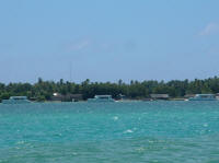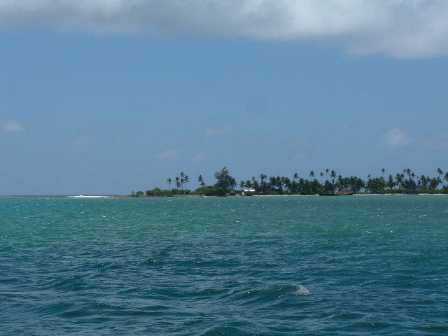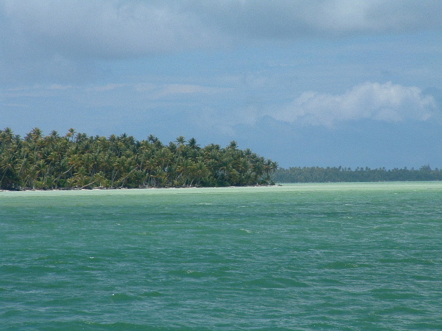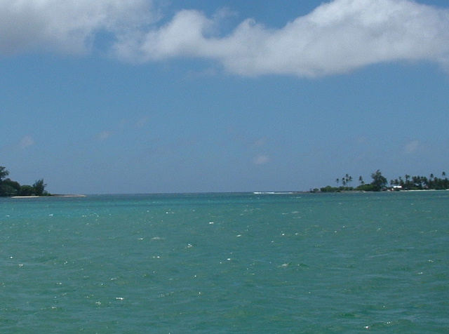 Logs & Stories - February 2006Fanning IslandFebruary 1, 2006 -- part 1 Bill: We're here at scenic Fanning Island now, a gorgeous spot. The place actually has a more real, more appropriate Kiribati name: Tabuaeran Atoll. Remote and exotic, well off the beaten path in spite of its proximity to Hawaii, 1100 miles to the north. This region, the Line Islands, is one of the more isolated areas of the Pacific, just a few scattered atolls with an aggregate population of around ten thousand folks. Christmas Island, in spite of being well known -- made famous by the Andrews Sisters' 'Christmas on Christmas Island', and British nuclear testing done there in the middle of the last century -- was actually pretty remote, too, until now about the most remote place we've spent any time at. [Editor's Note: There are actually two Christmas Islands; the other one is in the Indian Ocean between Australia and Indonesia, and is a colony of Australia, due no doubt to its phosphate deposits.] Tabuaeran is REALLY remote. The supply boat hasn't made it here in eight months, and there are no airplanes coming into the now overgrown landing field. We're told the island is running seriously short on basic things like antibiotics, soap, laundry detergent, thread, lighters, gasoline, tobacco and beer. The only supplies are coming in via a cruise ship operated by Norwegian Cruise Lines, which lands 1500 tourists for an afternoon every other week, briefly doubling the island's population. At this point we've only been here on Tabuaeran a couple of days. The passage from Christmas was really wonderful: a day of blissful reaching in medium air conditions. Kind'a like our passage from Mexico to the Marquesas, only with a small fraction of the duration. Coming into the pass here was pretty straightforward, too. We timed the passage so we'd arrive slightly before slack water, and entered the pass at mid-day with about a knot and a half of current against us. A couple of months back, we came into Suwarrow in the northern Cook Islands in similar tidal circumstances, but the pass and the lagoon were trickier, having more reefs to run into. Also, at that time, a big nasty squall moved in and obscured all the underwater obstacles (yikes!). Here, a tiny squall passed through first, and then we were able to enter with poor visibility, shallow and hard coral patches difficult if not impossible to spot. Under the noon-day sun, entering the lagoon was visually spectacular -- fringed by a band of tall green palm trees hovering over a white line of coral beach, the sparkling, light green saltwater lake extended out three miles toward the atoll's far shore, a giant blue-green gem under a bright sun.