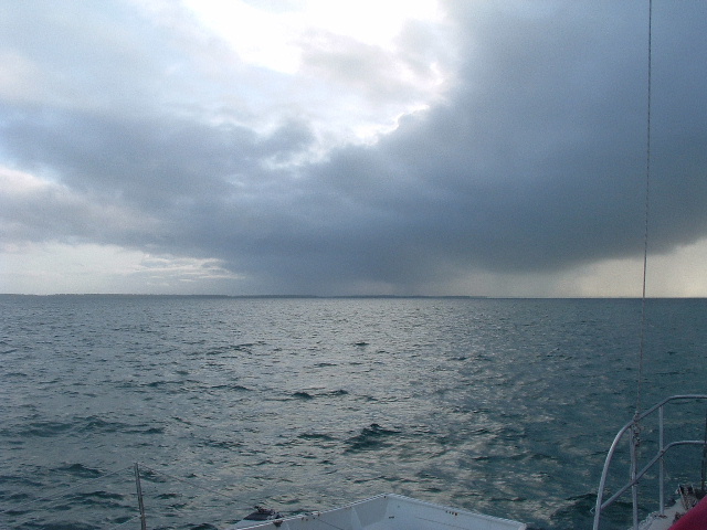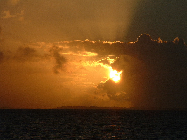 February 5, 2006 -- part 1 Bill: At this time of year, Tabuaeran sits under the southern edge of the Doldrums, now typically called the Intertropical Convergence Zone or ITCZ, the band where southern hemisphere southeasterly tradewinds converge with northern hemisphere northeasterly tradewinds. Because of the Earth's rotation, winds at the equator in the middle of the Pacific have an easterly tendency, offset by westerly winds in the high latitudes and creating two great spirals of wind, one in the southern hemisphere and another in the northern hemisphere, each rotating around a centrally located high pressure zone. This convergence zone, the ITCZ, is a moving band of air that can be challenging for sailors. It is characterized by frustrating light winds and terrorizing squalls. The squalls we experienced during our transit through the Doldrums aboard Soceress when I was ten made such an impact on my father that he shortened Seafire's boom by four feet and had a main built with only a single reef far up the sail's luff, enabling him to radically shorten an already small sail in one fell swoop. For years I hated this main because in Puget Sound's light winds it made Seafire undercanvassed, but after using it in Mexico I concluded that the helm was far more balanced than with our larger racing main, enabling the windvane and autopilot to steer more easily. We had a second, less radical reef added, though. For an islander, the Doldrums seem a blessing. Christmas Island lies south of the normal region, out of the area of squalls, receives little rainfall and is known for droughts. When Captain Cook came to the place on Christmas Eve of 1777, he found a barren, desolate island with only a few coconut trees. I recall reading somewhere that Tabuaeran gets around 180 inches of rain, and so far my experience confirms this. It's rained nearly every day, some days all day. Plus, unexpectedly, the wind blows constantly at about 20 knots, just as it did at Christmas Island. When we came here we expected to be greeted by a placid, clear lagoon, but so far the water has been murky and rough, a little challenging to launch and board a dinghy, a little creepy to swim in. We've been told, though, that these conditions are only a characteristic of winter, with lessening rain, lighter wind and clearer water reappearing as we move into spring. On the good side, though, the wind power here has treated us to an energy abundance; we've been able to have pretty much unlimited use of both the PC and the watermaker without having to run the diesel to generate power. Plus, should our watermakers fail, we'd have a supply of water falling from the sky. |