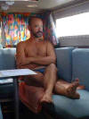 We left for French Polynesia in November of 1970. It took us 32 days to get there, the first week upwind, the next two weeks in the doldrums, the final ten days or so in the SE trades, where we are now. I remember Joe and I being so seasick, during that first week of going upwind, that we couldn't keep down any food. At one point we started puking yellow fluid. Thinking it was urine, that we were dying because our innards had ruptured, we were afraid to inform our parents. When we finally worked up enough courage to tell them that we were dying, we were told that the fluid was bile, some sort of stomach fluid, and that we'd probably make it through the experience. Around that time, I recall having a "why are we doing this?" conversation with Dad. I'd assumed we had to sail to French Polynesia because we were too poor to afford plane tickets. Not so, Dad told us; it costs more to take a sailboat there. "Huh?" Ever been seasick for a week, your nausea overwhelming your existence? Ever had one of those moments when you thought your parents were completely insane?